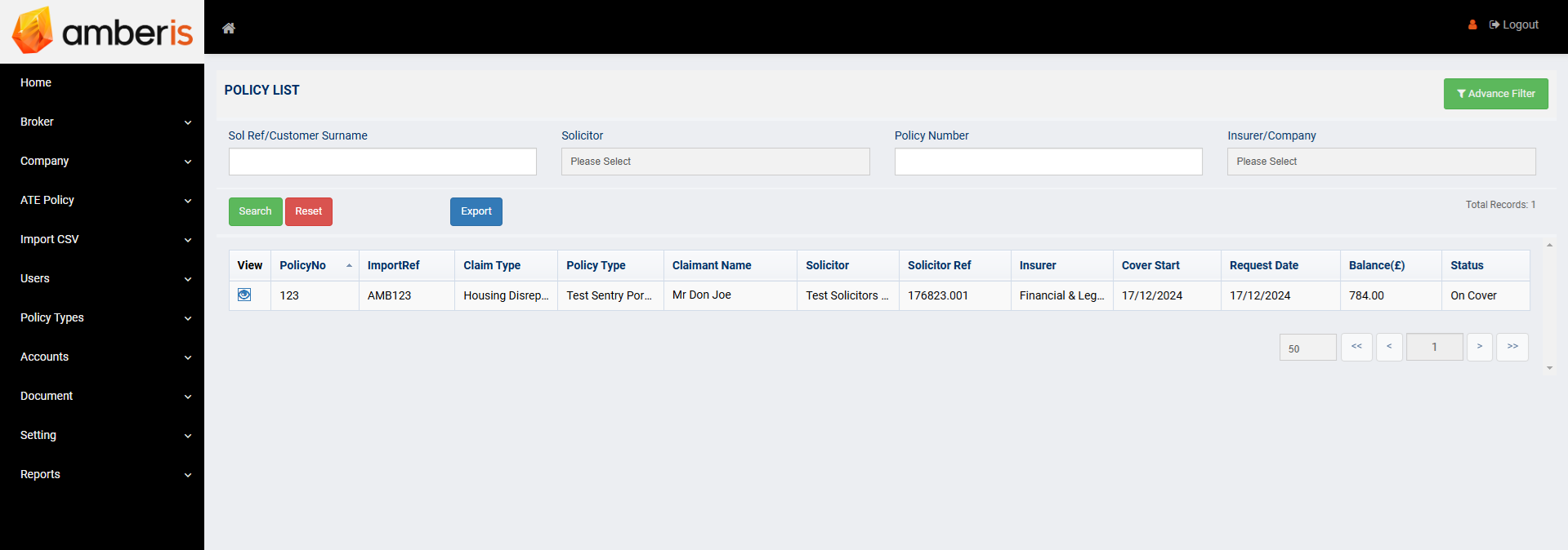 Amberis – A Portal for insurance broker firm.